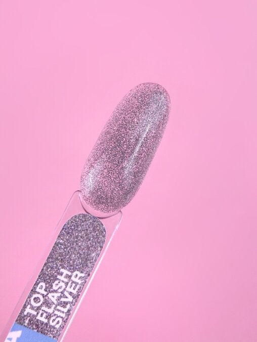 TOP Flash Silver is a reflective TOP with decorative elements of a silver shade, without a sticky layer, which will look harmonious with any color on the nails. He is able to make your client's manicure interesting and unusual